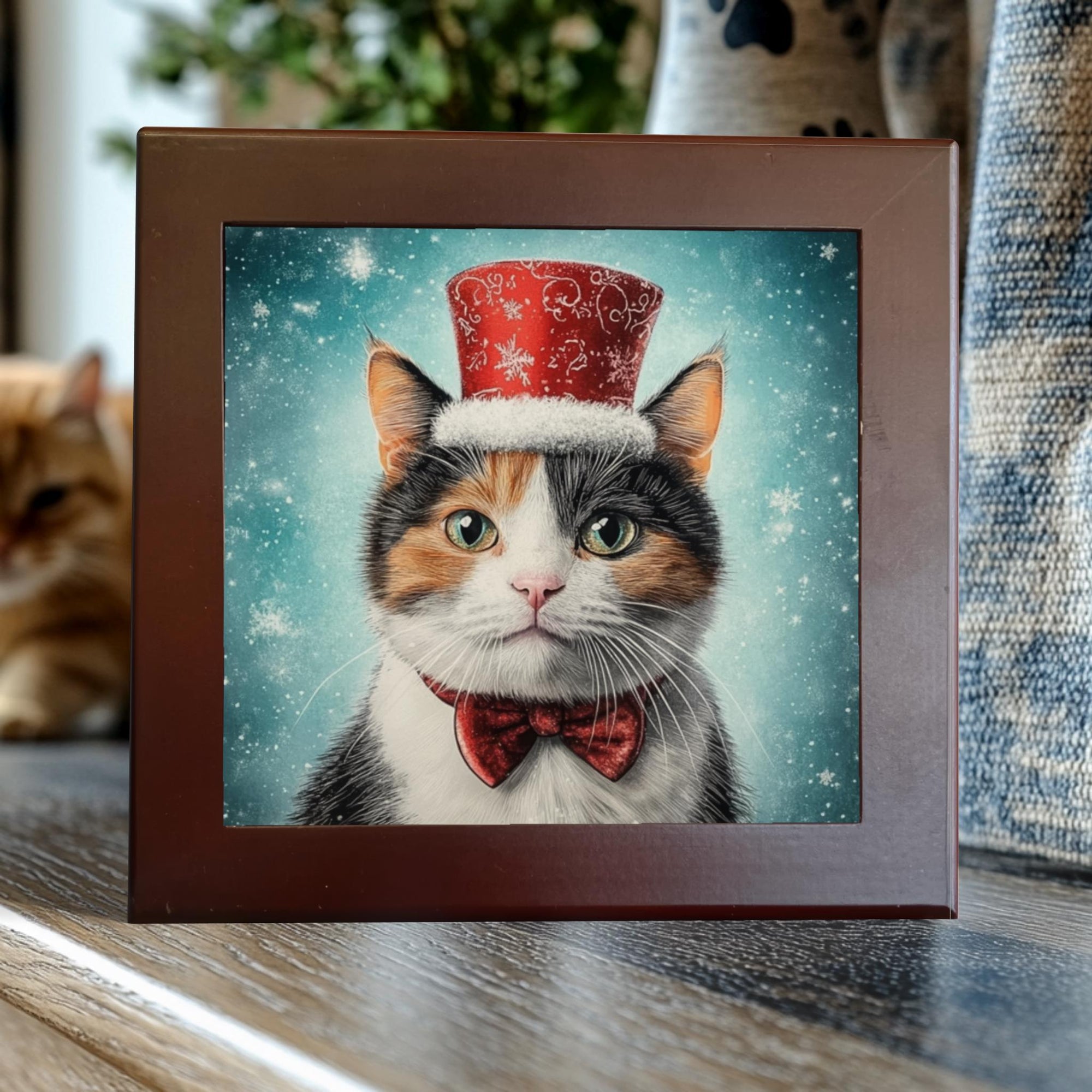 Bring festive cheer and feline (or canine!) charm into your home with this handcrafted porcelain tile featuring original holiday pet artwork. Each design captures the spirit of the season with vibrant color, playful detail, and just the right dash of whimsy—perfect for gift-giving or decorating your own cozy space.
