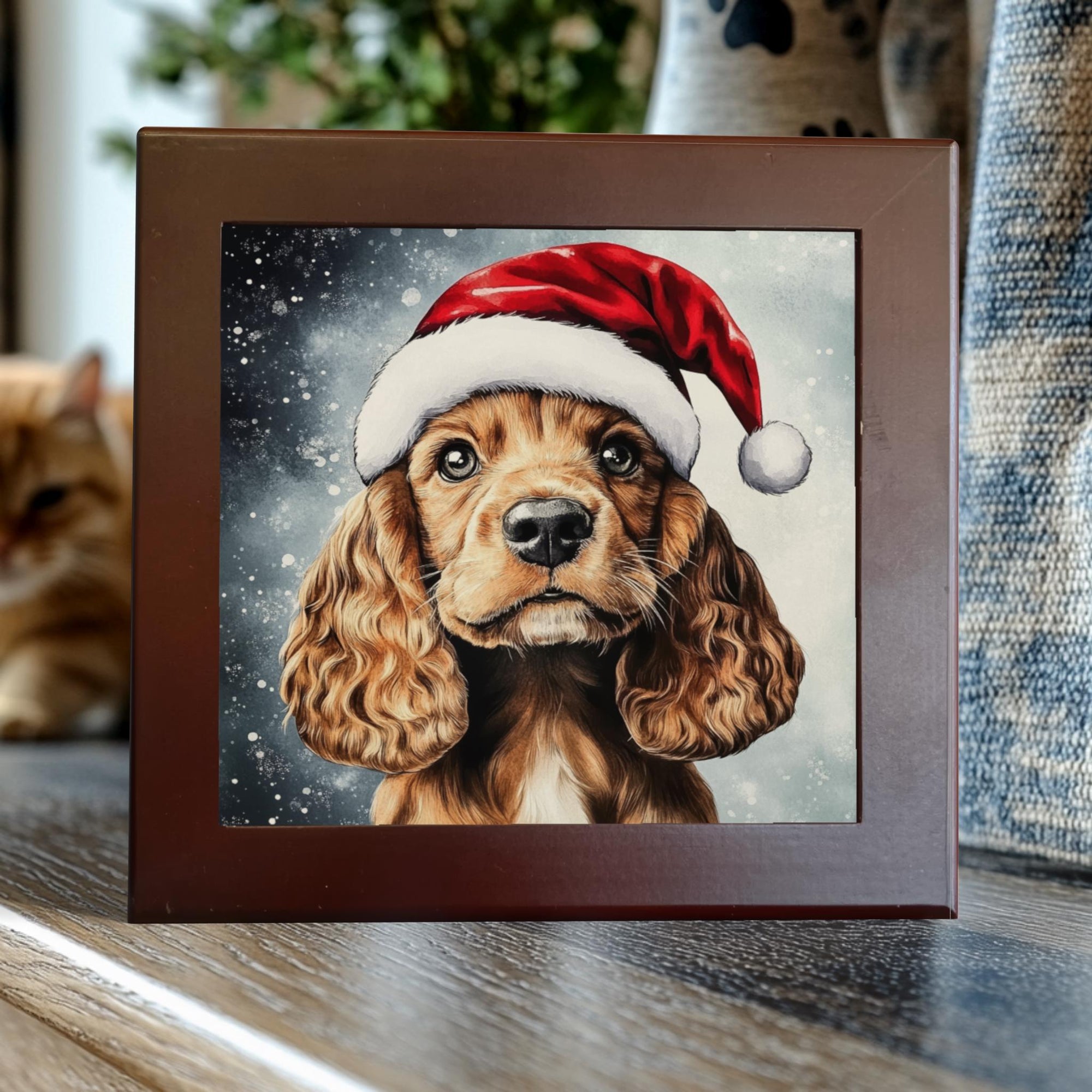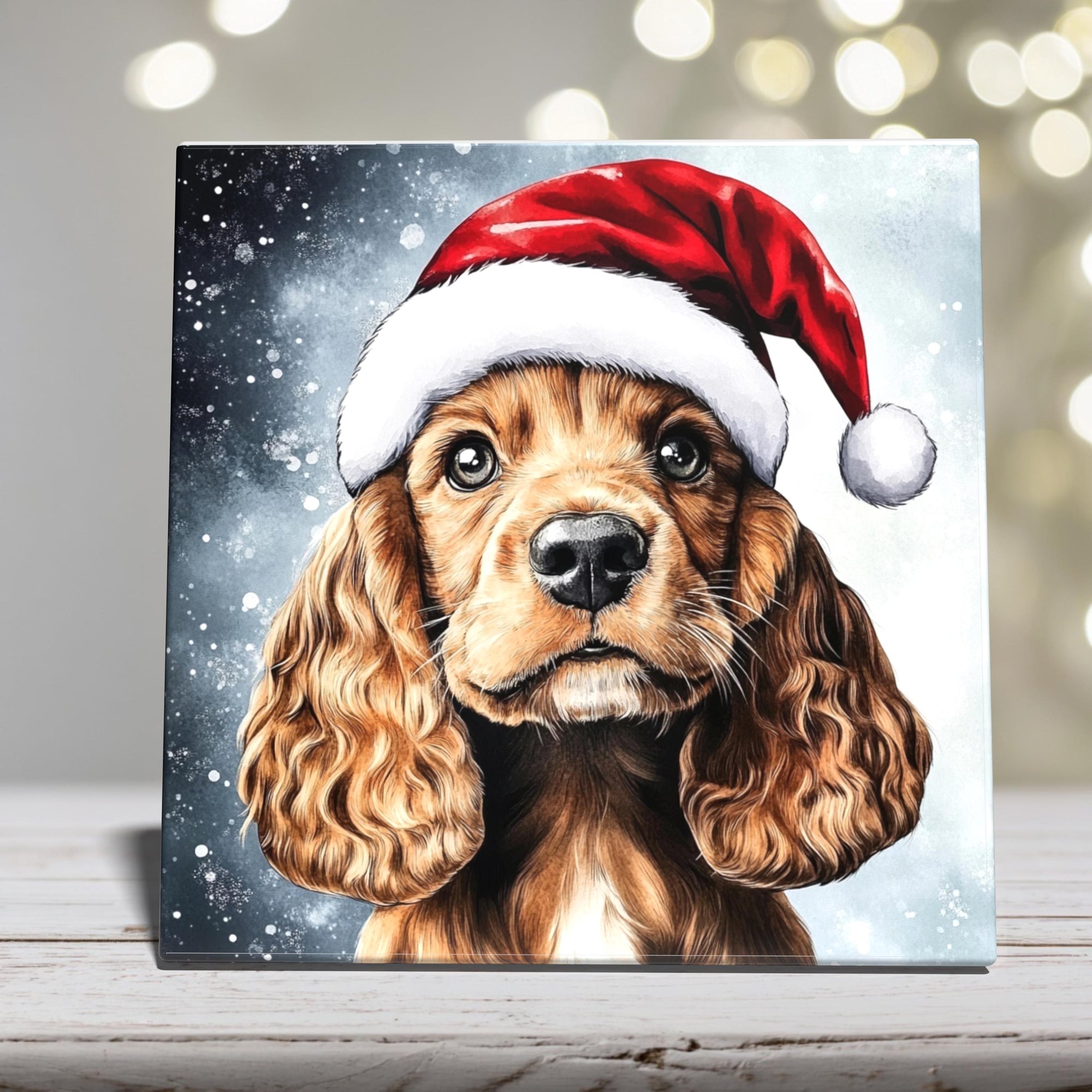 Cocker Spaniel in Santa Hat – Christmas Dog Porcelain Tile