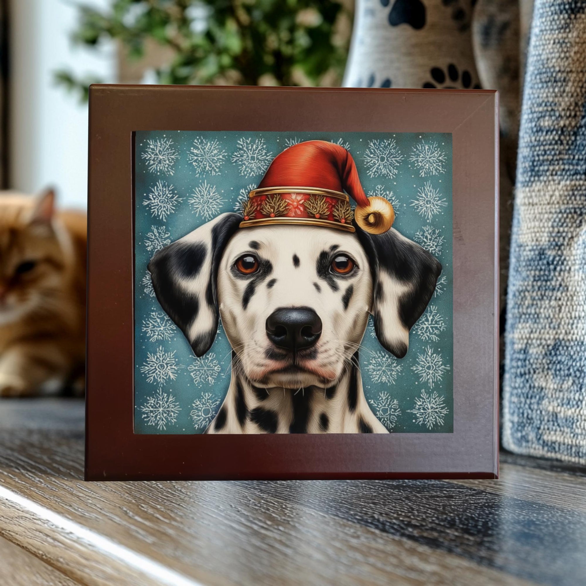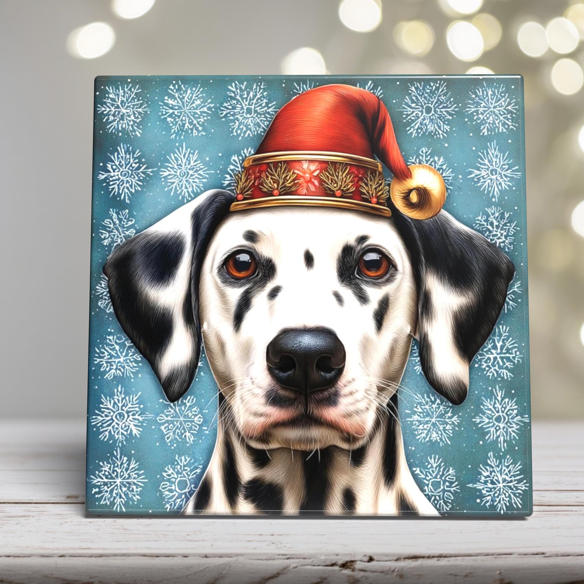Dalmatian in a Santa Hat – Christmas Dog Porcelain Tile