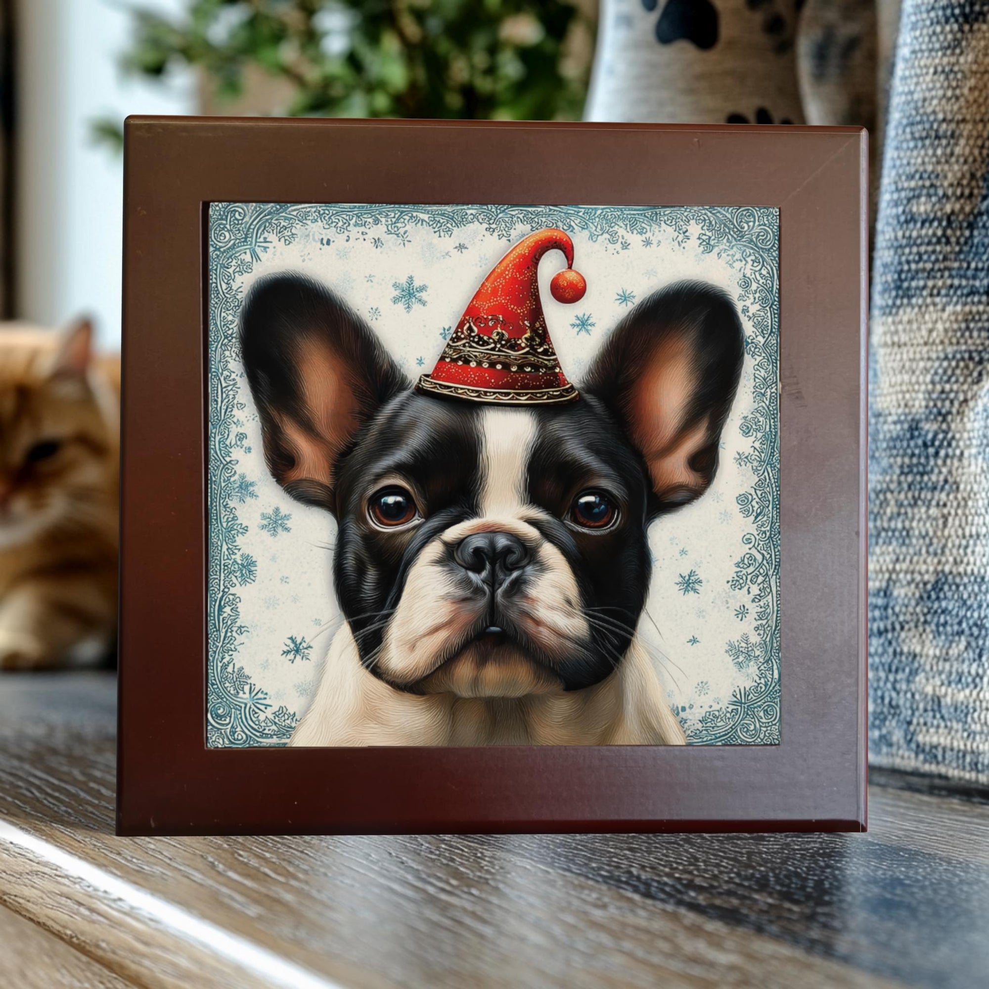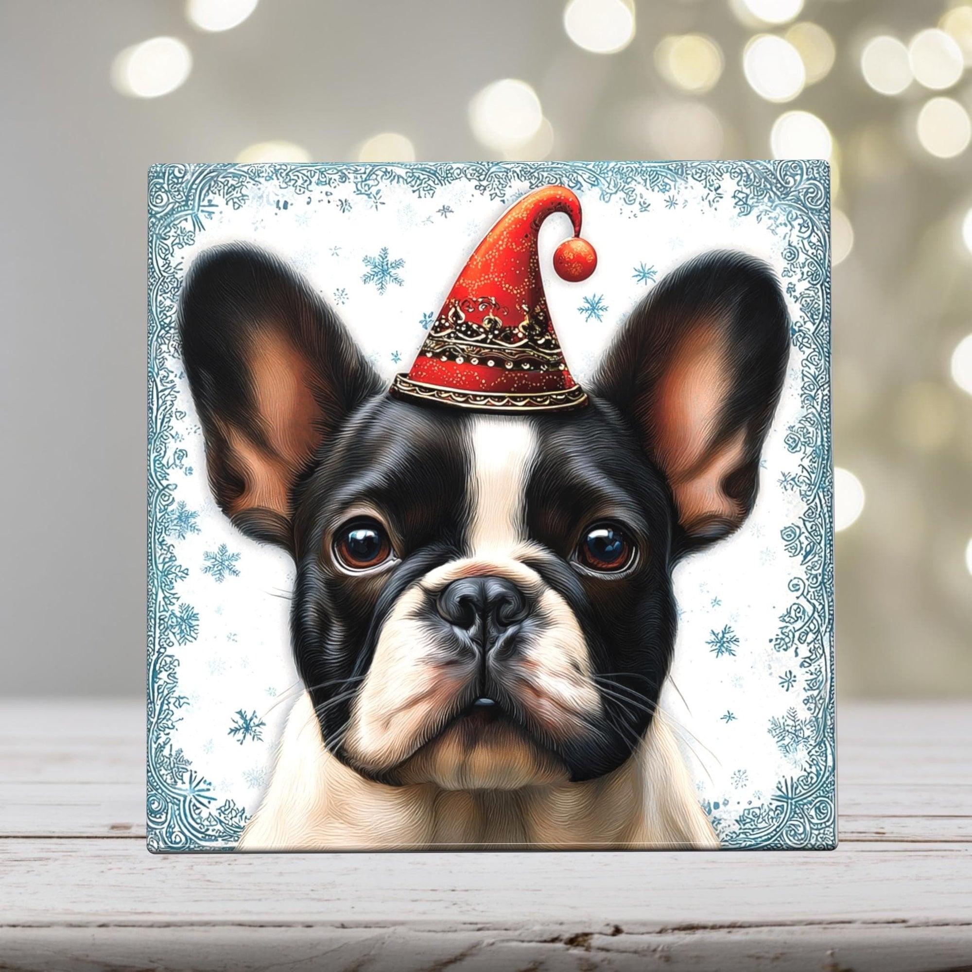 French Bulldog in Fancy Elf Hat– Christmas Dog Porcelain Tile