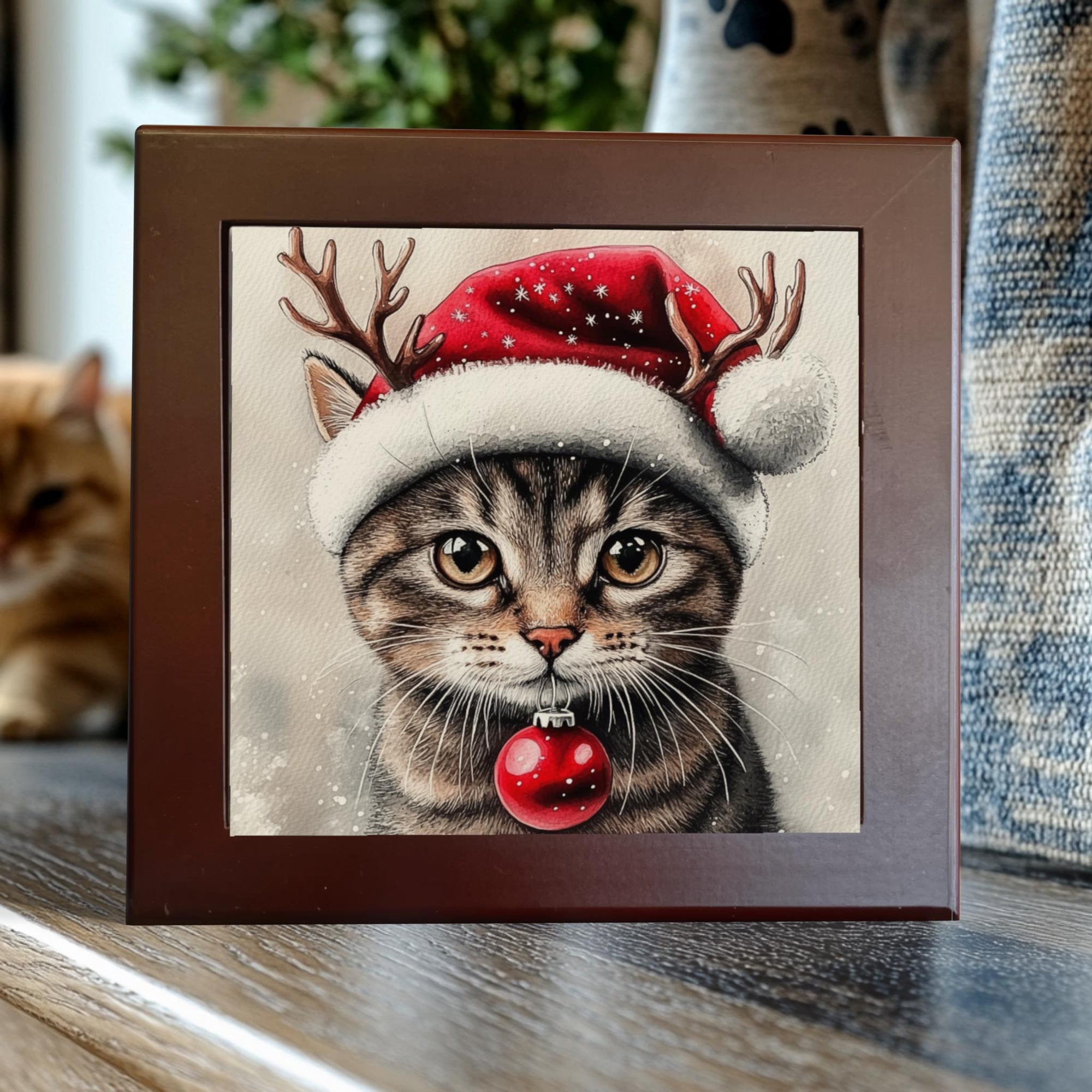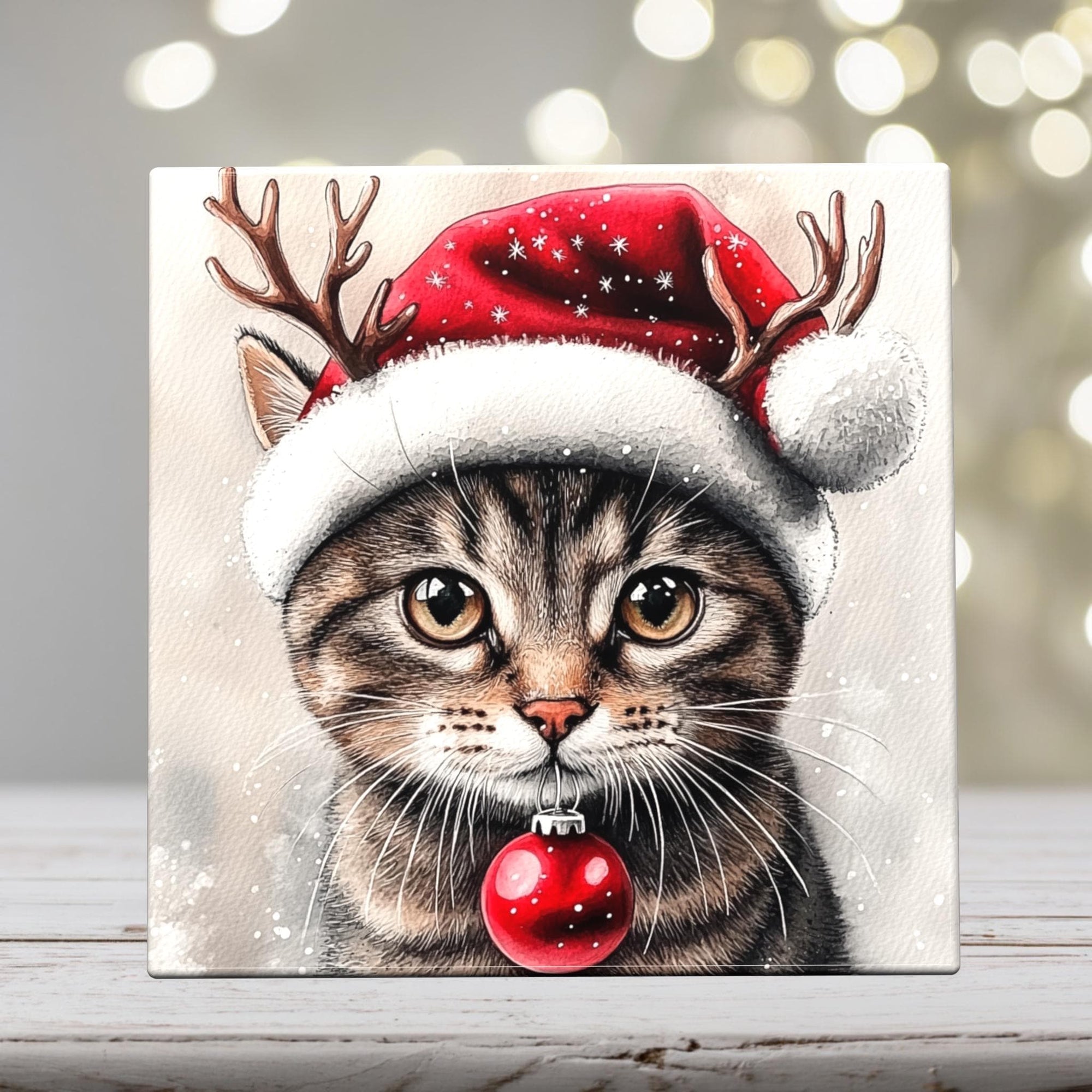 Bring festive cheer and feline (or canine!) charm into your home with this handcrafted porcelain tile featuring original holiday pet artwork. Each design captures the spirit of the season with vibrant color, playful detail, and just the right dash of whimsy—perfect for gift-giving or decorating your own cozy space.