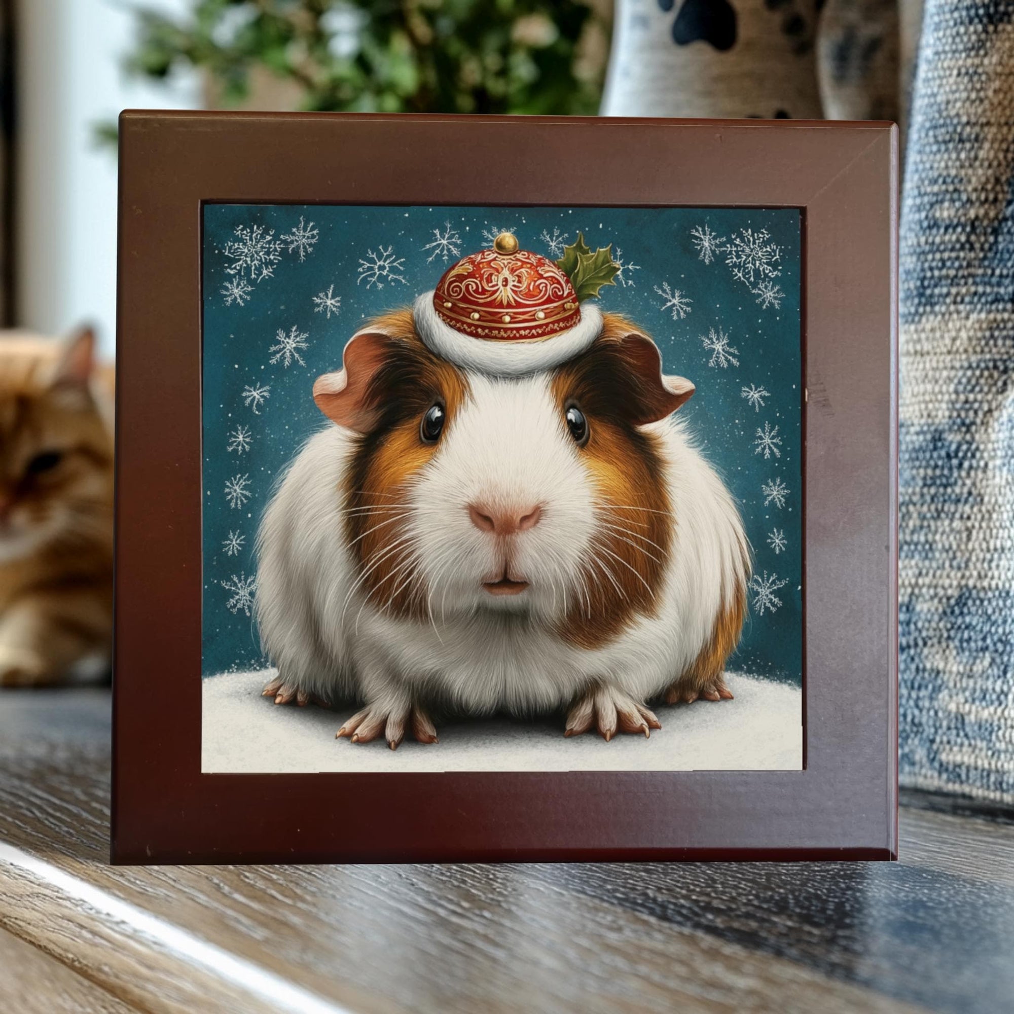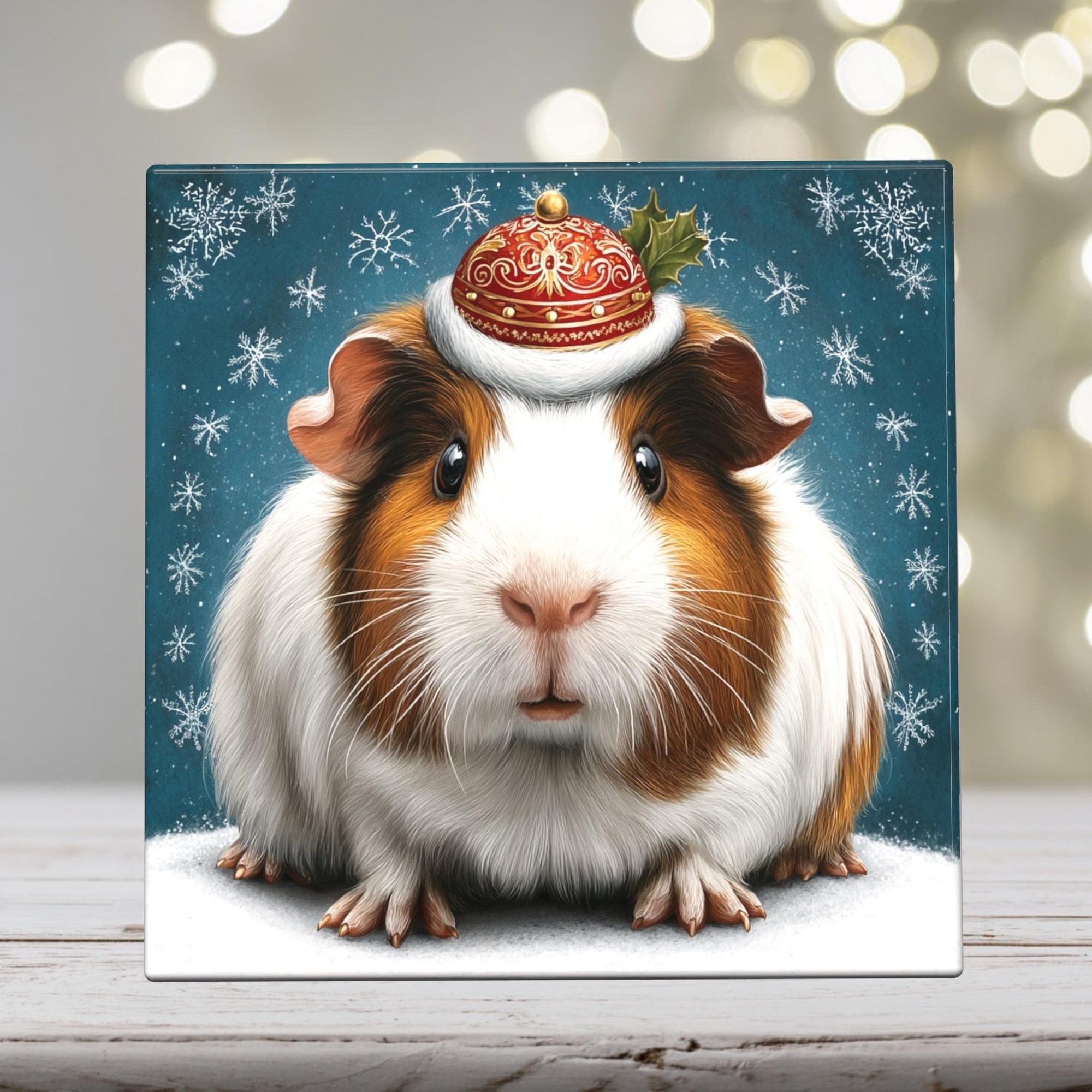 Guinea Pig in Christmas Hat – Holiday Animal Porcelain Tile