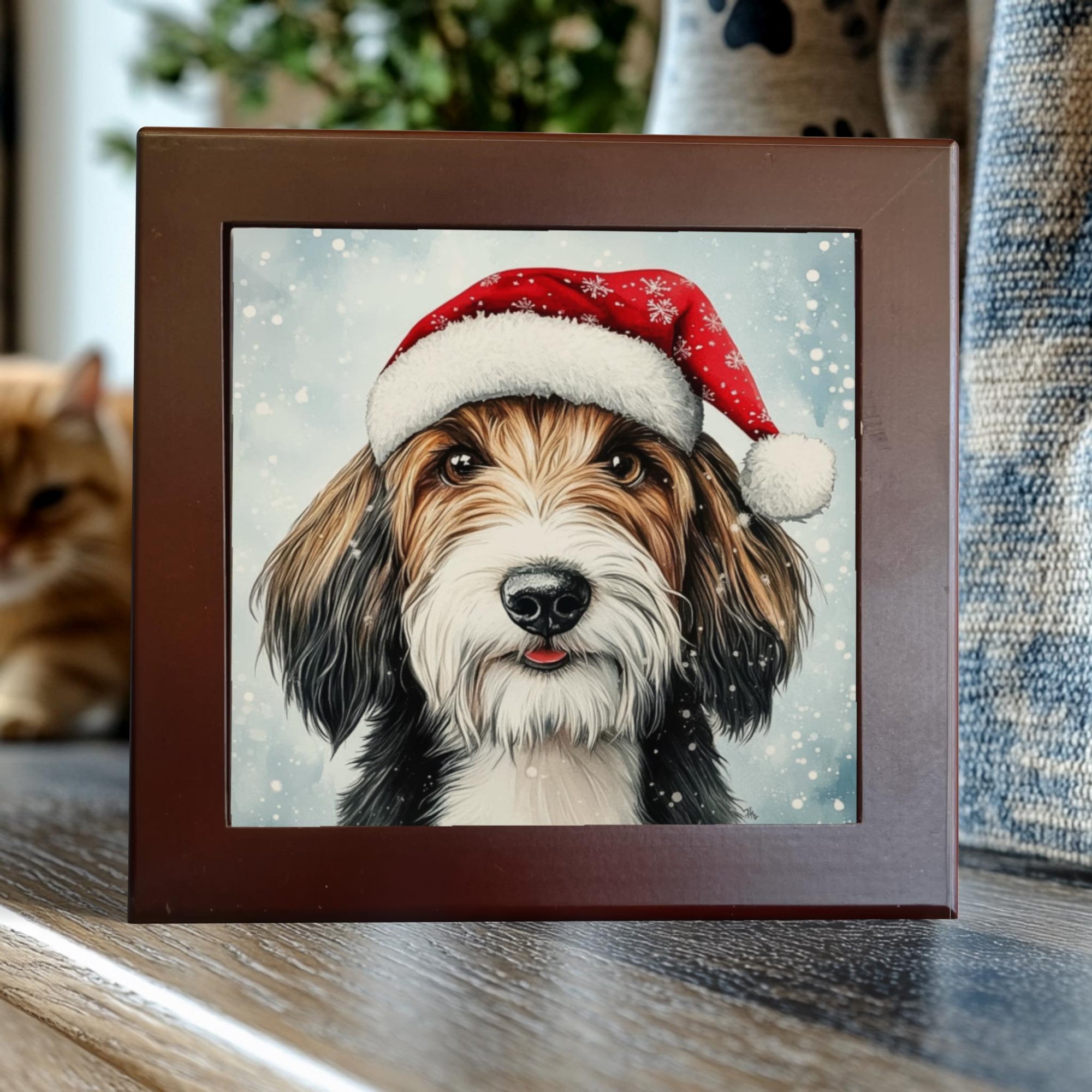 Shaggy Sheepdog in Santa Hat – Christmas Dog Porcelain