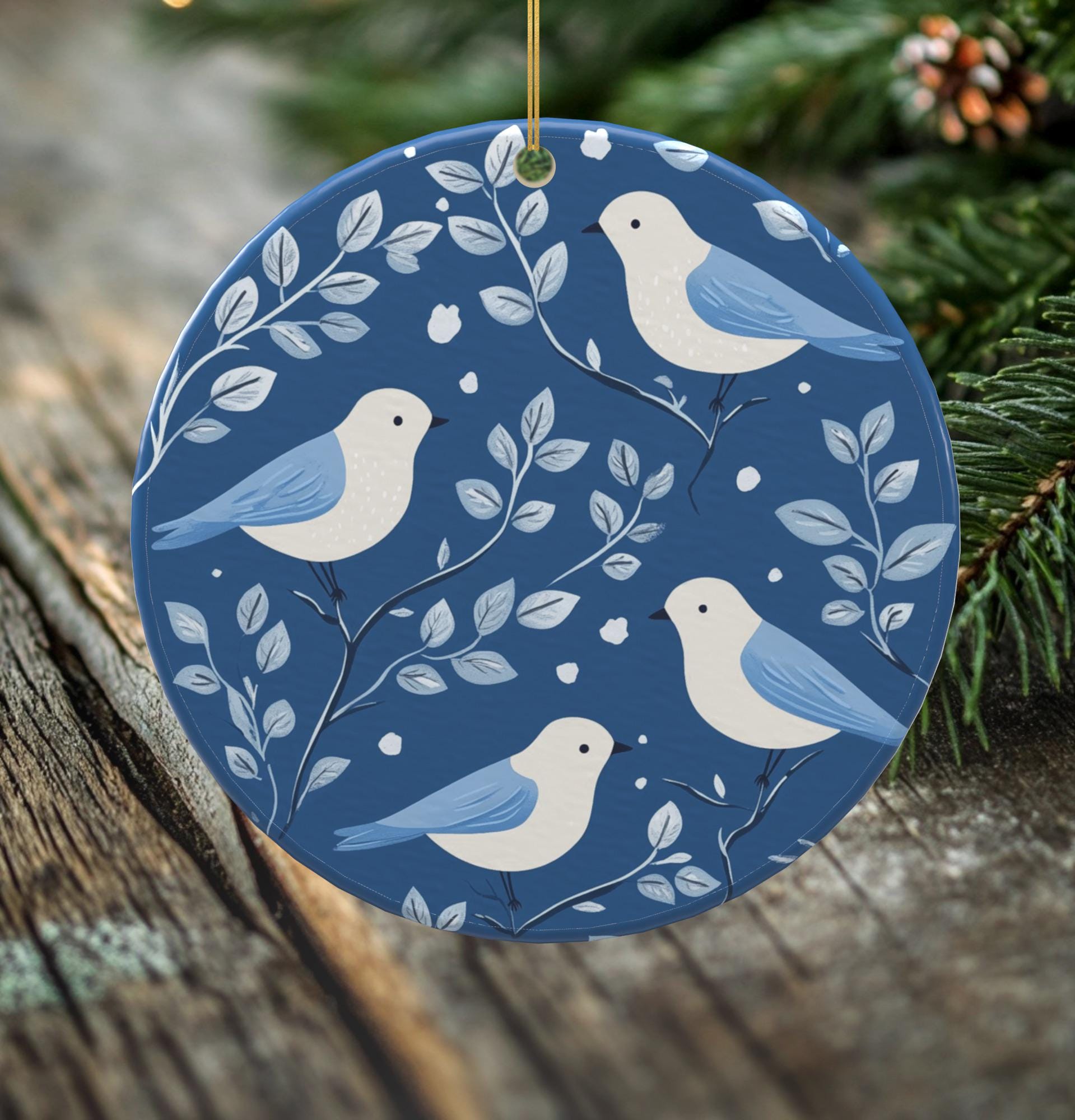 Winter Birds Porcelain Christmas Ornament - Double-Sided Woodland Keepsake -- Scandinavian Style