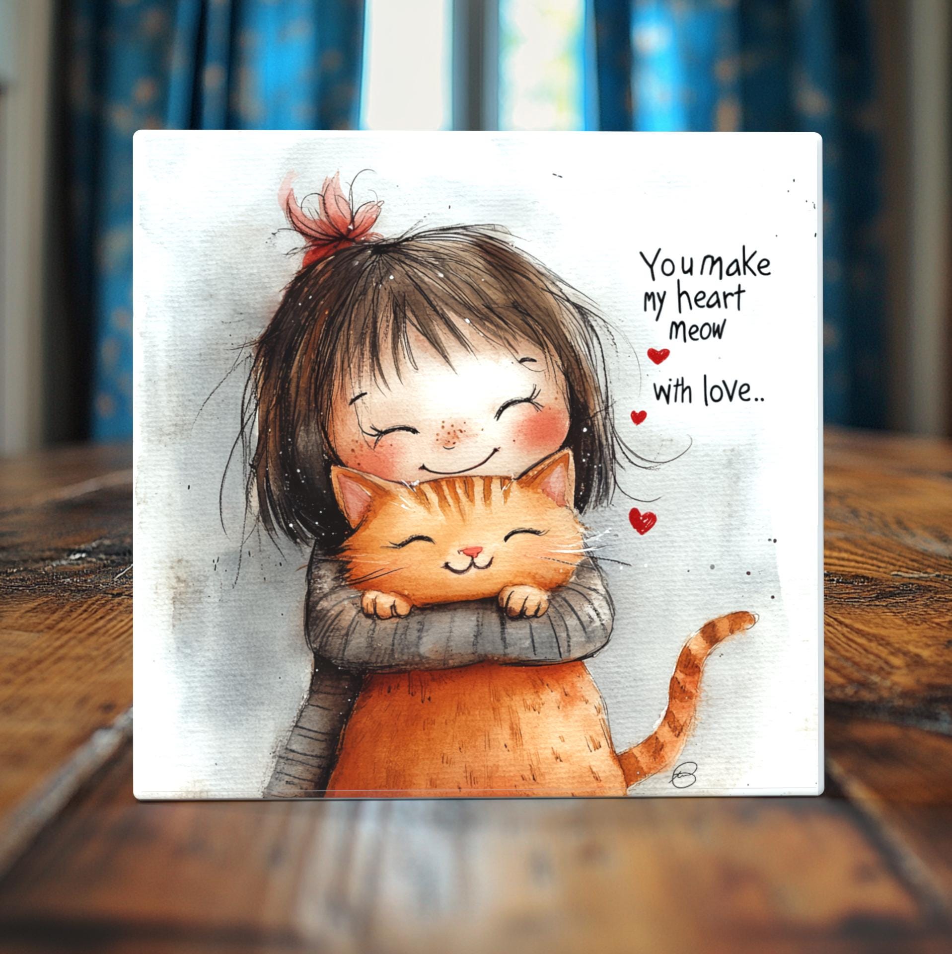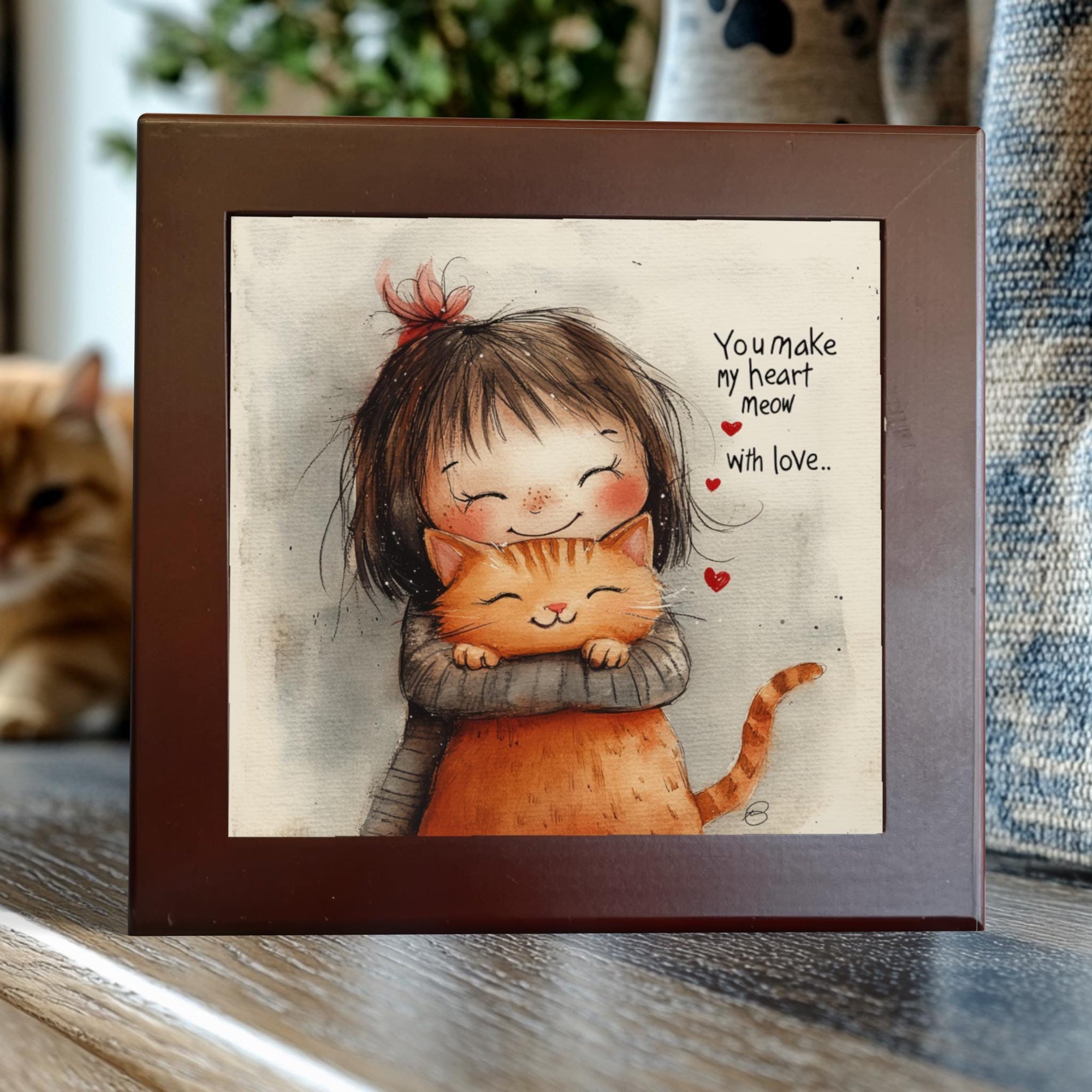 You Make My Heart Meow Ceramic Tile – Adorable Cat Lover’s Décor