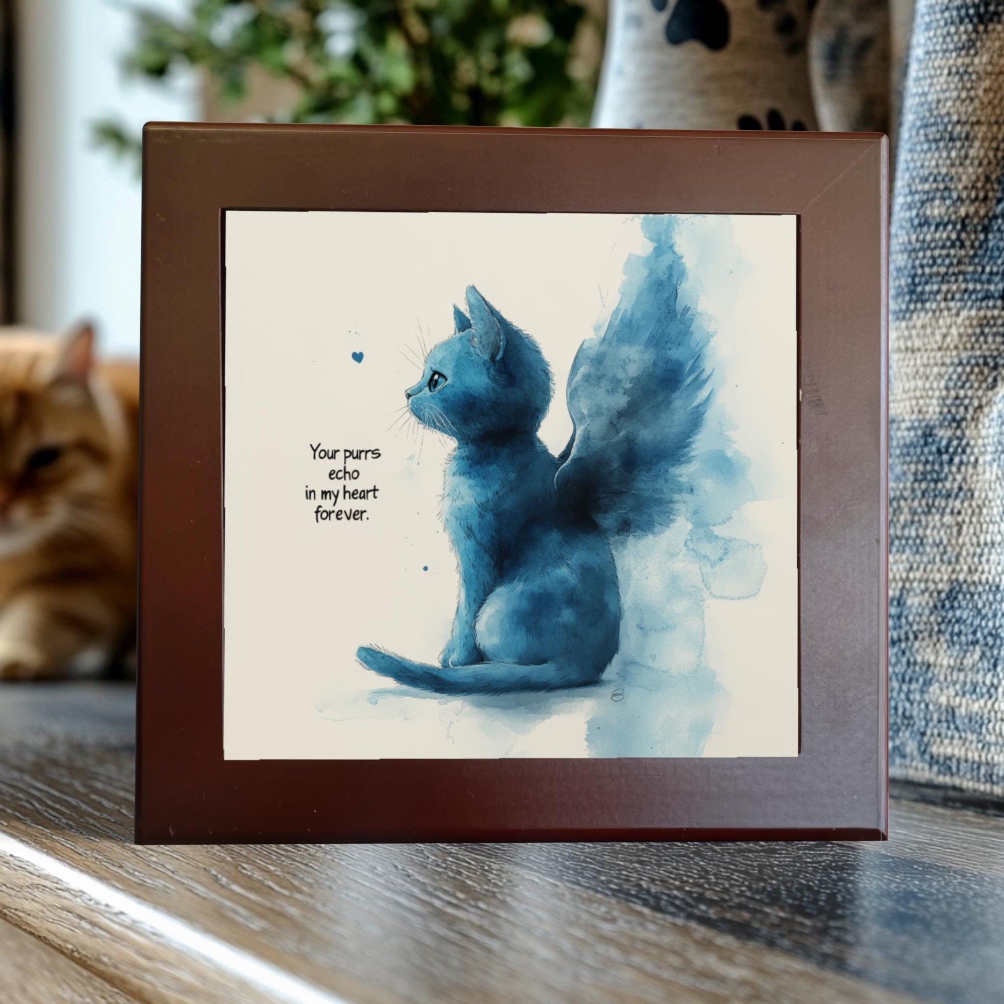 Your Purrs Echo in My Heart Forever Ceramic Tile – A Tribute to Feline Love --Memorial