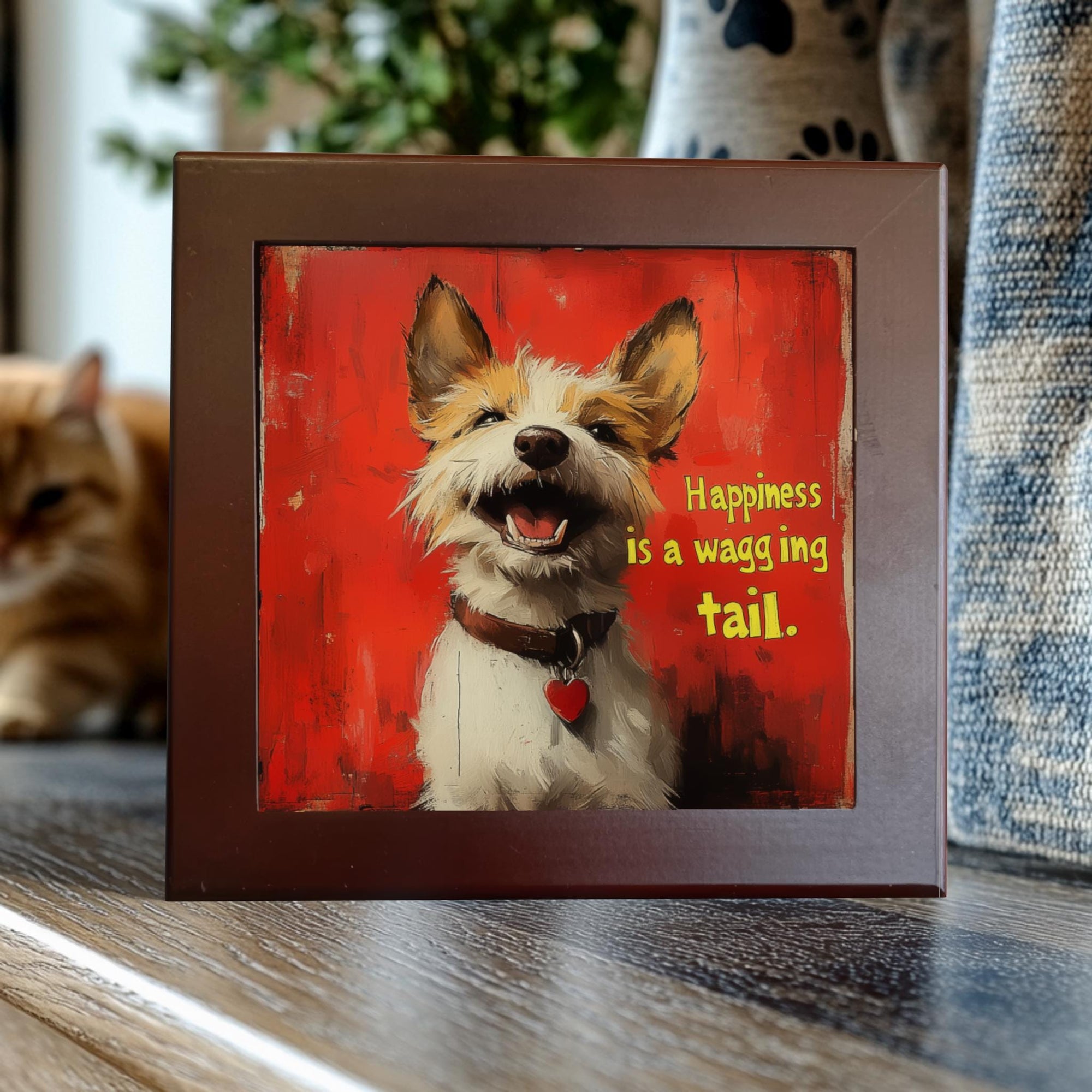 Happiness is a Wagging Tail Ceramic Tile – Heartwarming Dog Lover Art