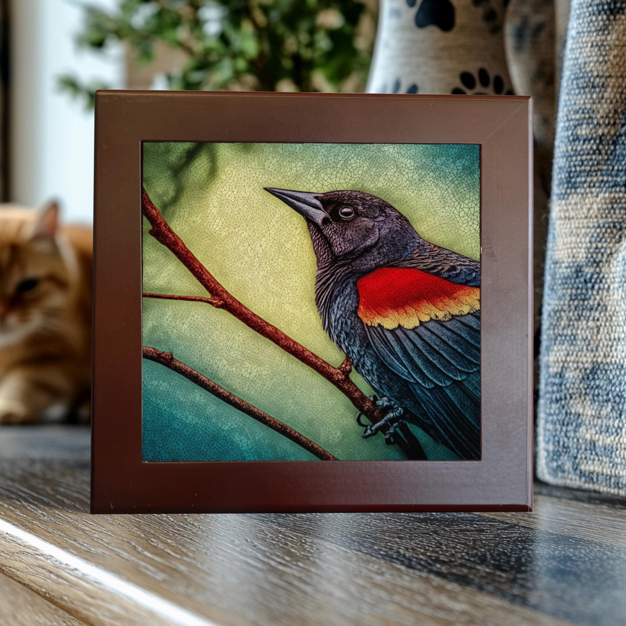 Red-Winged Blackbird – Vibrant Songbird Art on Ceramic Tile