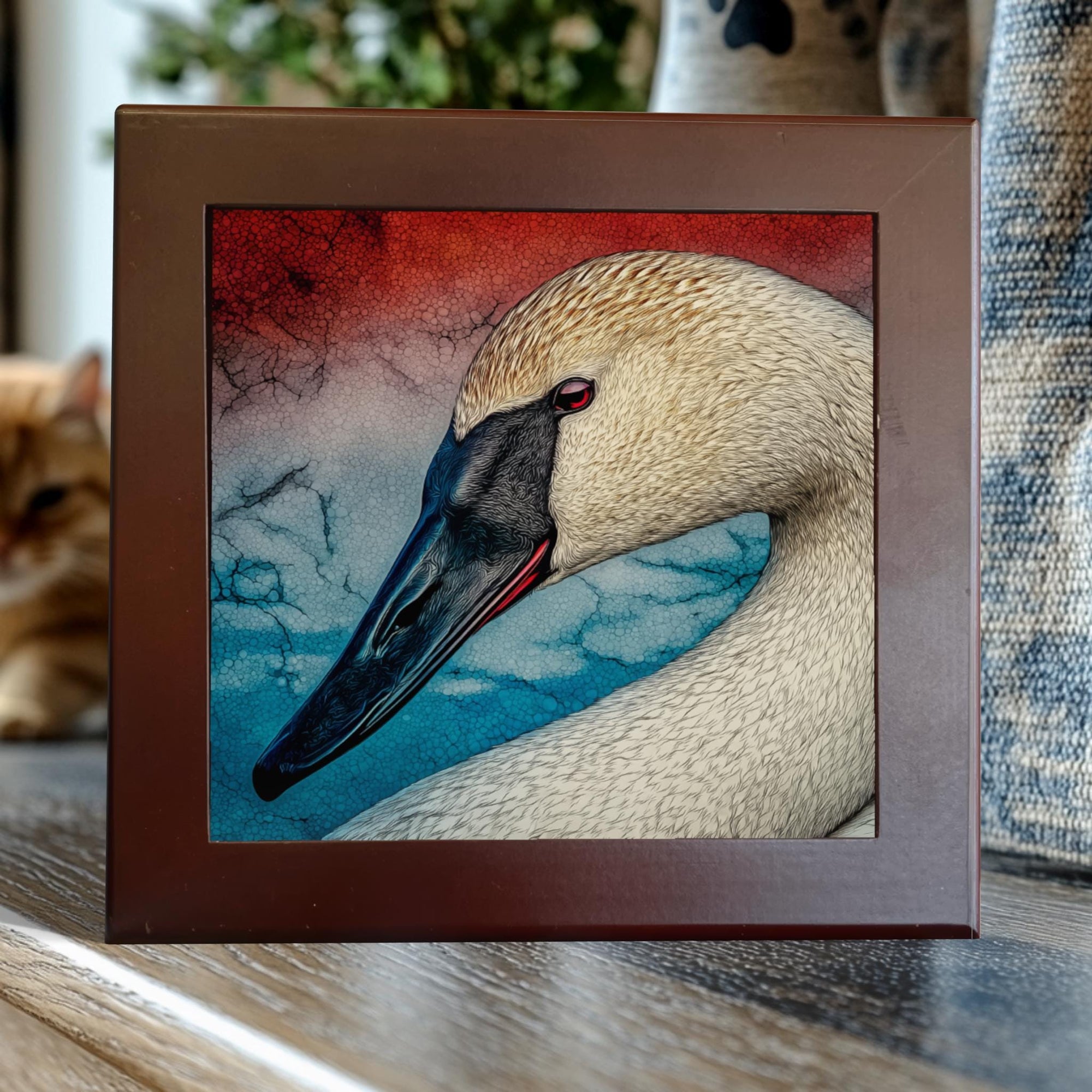 Trumpeter Swan Tile – Elegant Porcelain Wall Art for Bird Enthusiasts