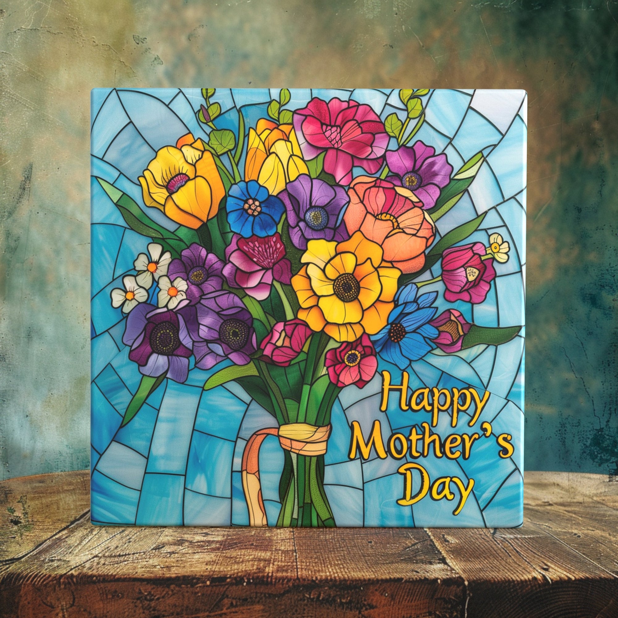 Bouquet of Blooms - Faux Stained Glass Style Mother's Day Art Tile