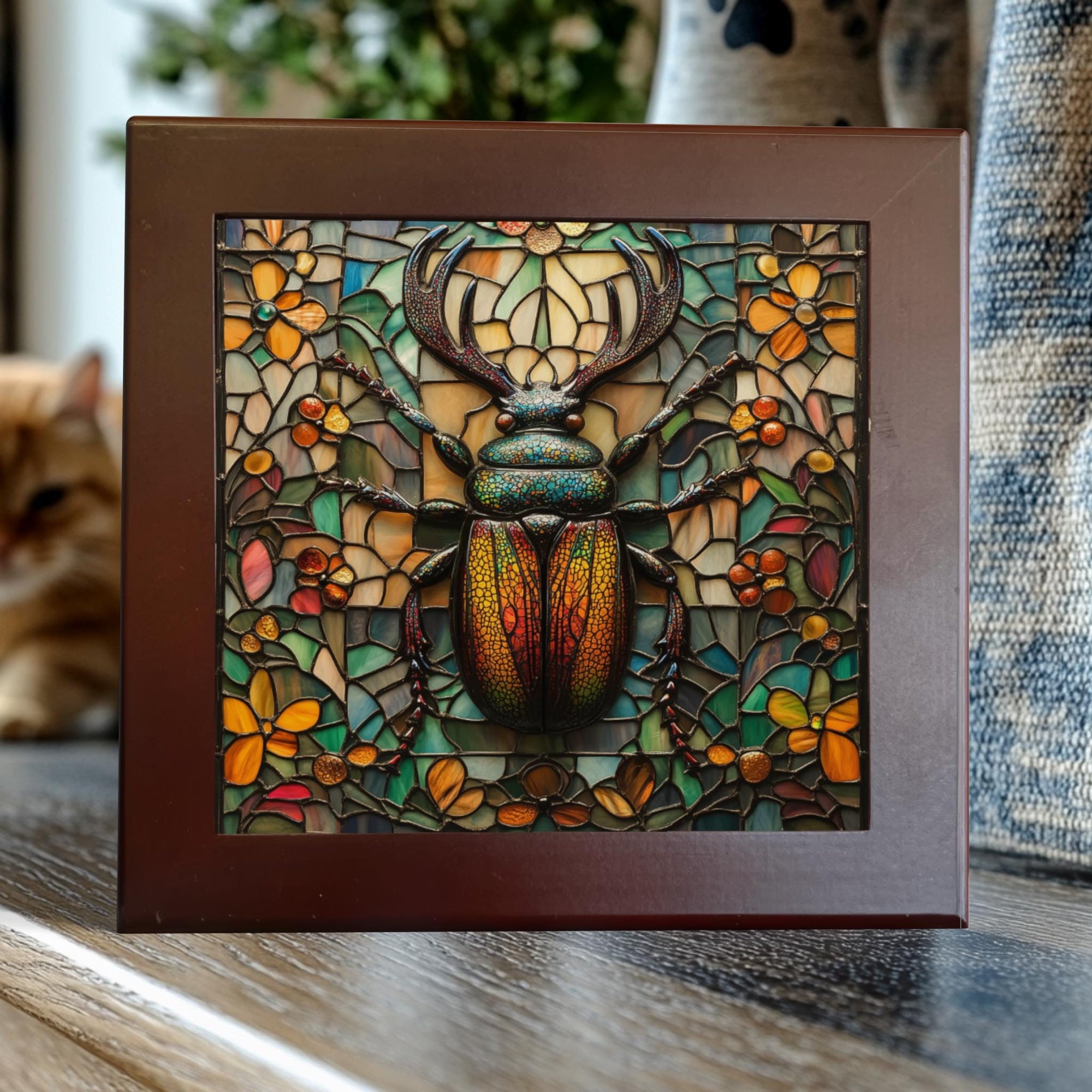 Offered in both 4-inch and 6-inch sizes, this richly detailed tile is available with optional display options, including a cherry wood frame or a black metal easel. A stunning gift for nature lovers, insect collectors, or anyone drawn to bold, colorful art with a touch of the extraordinary.