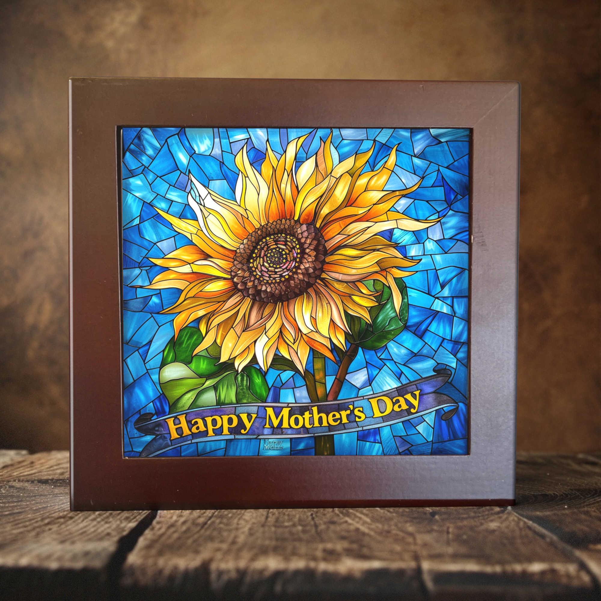 Sunshine Splendor - Faux Stained Glass Sunflower Mother's Day Tribute Tile