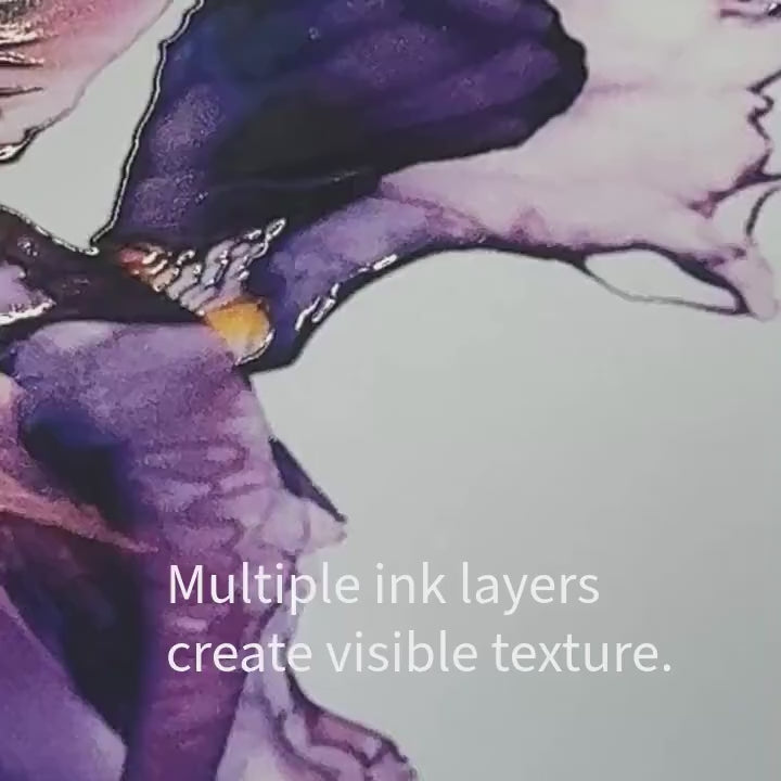 This artwork is part of the Blossoms Collection created by Tad Hartmann, where each design explores flowing petal forms with deep, layered color—creating florals that feel expressive, luminous, and alive using traditional watercolor and alcohol ink techniques.