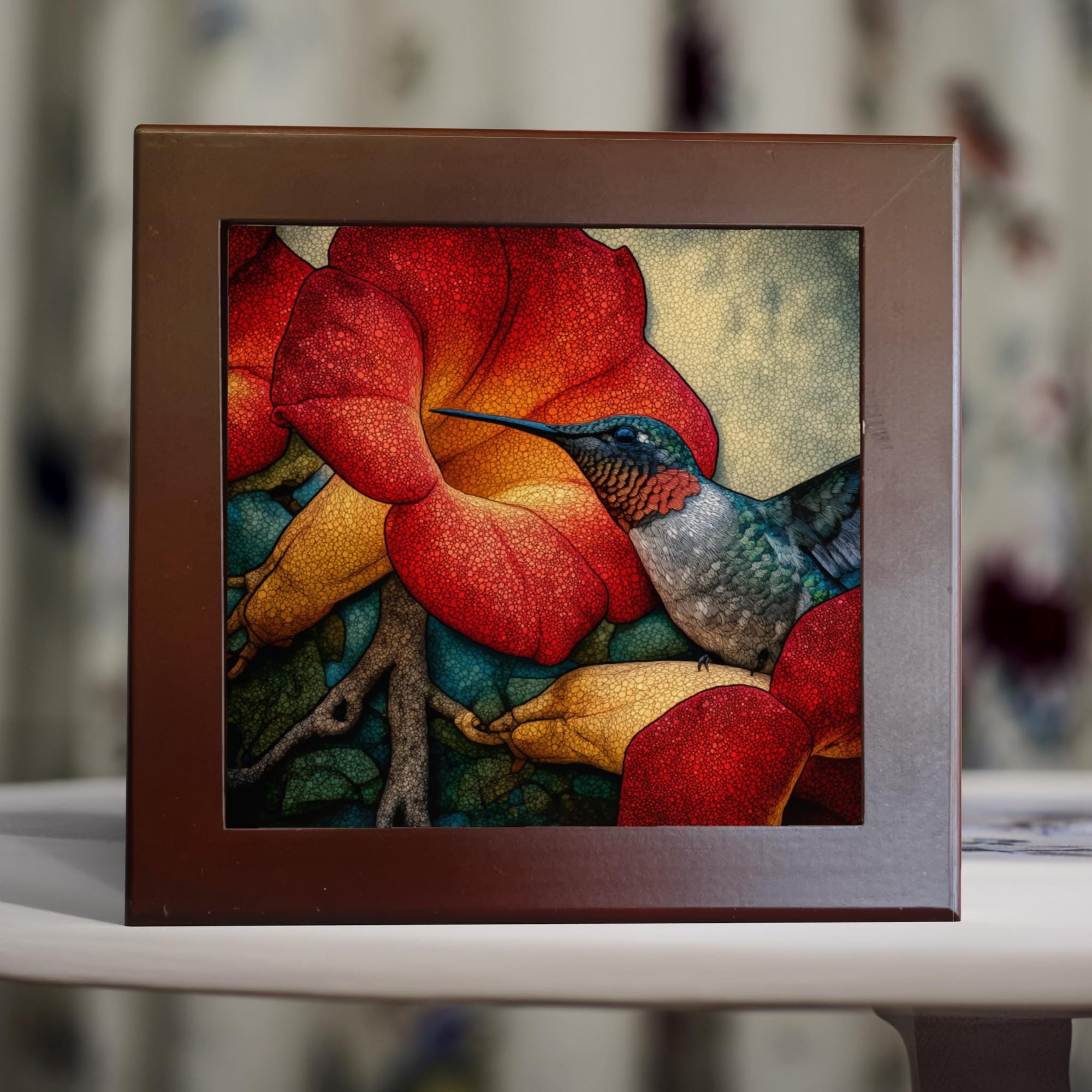 Hummingbird & Trumpet Vine – Vivid Floral Bird Tile Wall Decor