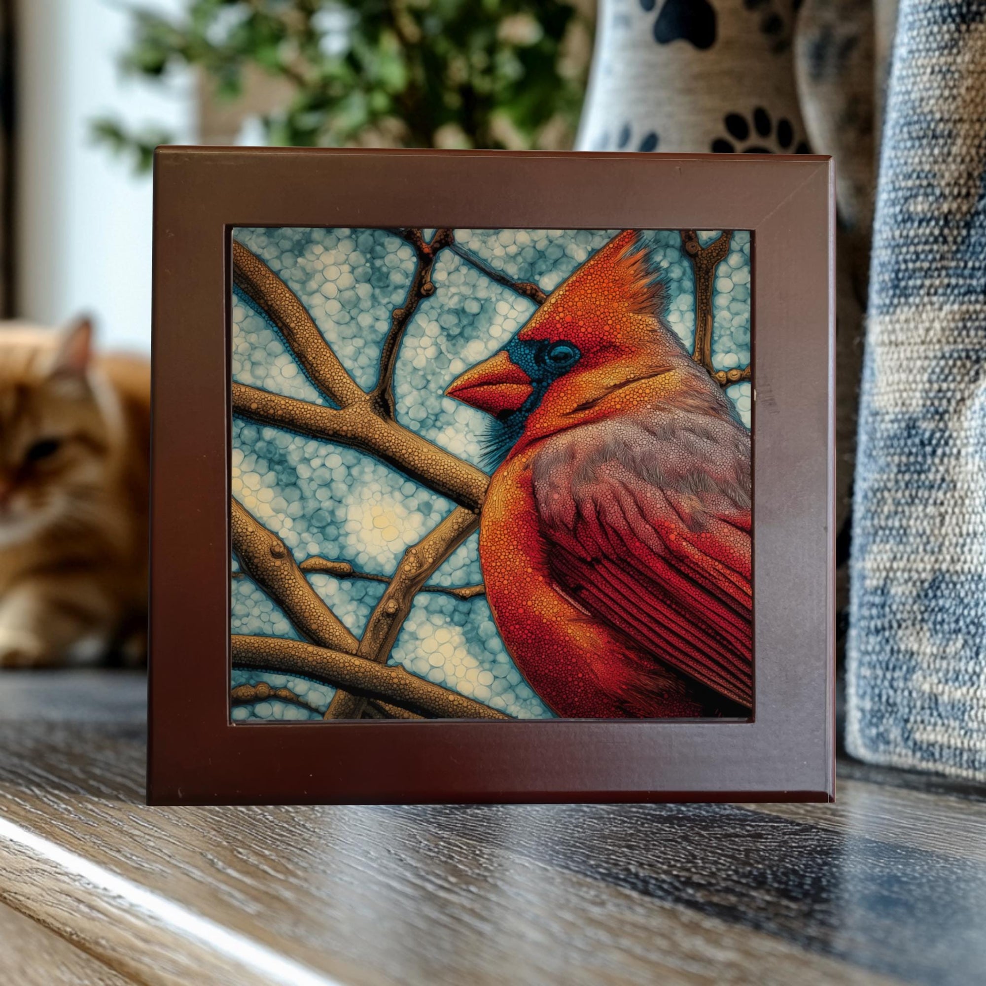 Red Cardinal in Winter Trees – Bold Porcelain Tile with Vintage Style